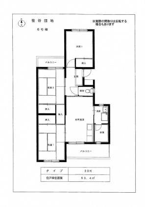 - ●住戸単位面積 : 63.4m2