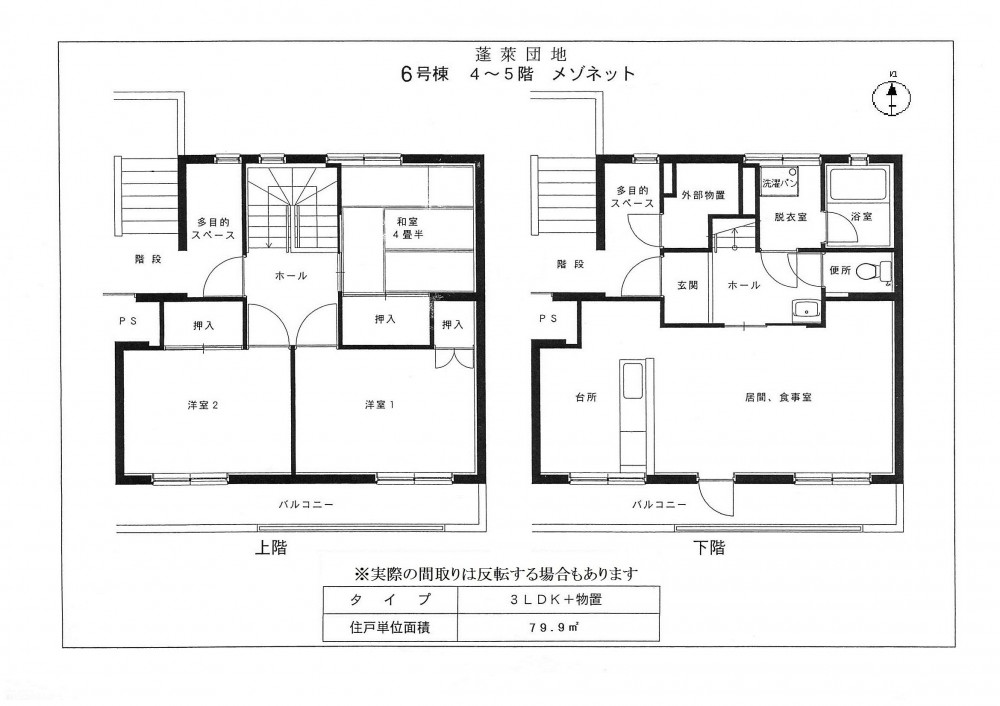 - ●備考 : 4階と5階の2層構成のメゾネットタイプです。